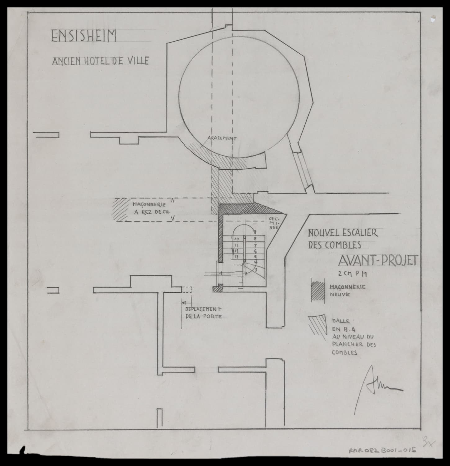 Avant-projet pour la création d’un nouvel escalier d’accès aux combles, plan de masse.