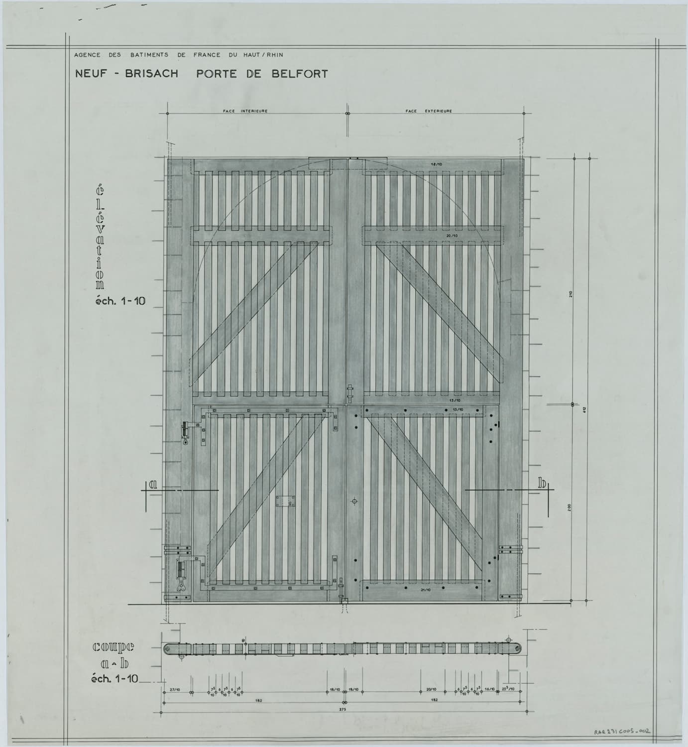 Plan de masse et élévation d’une porte.