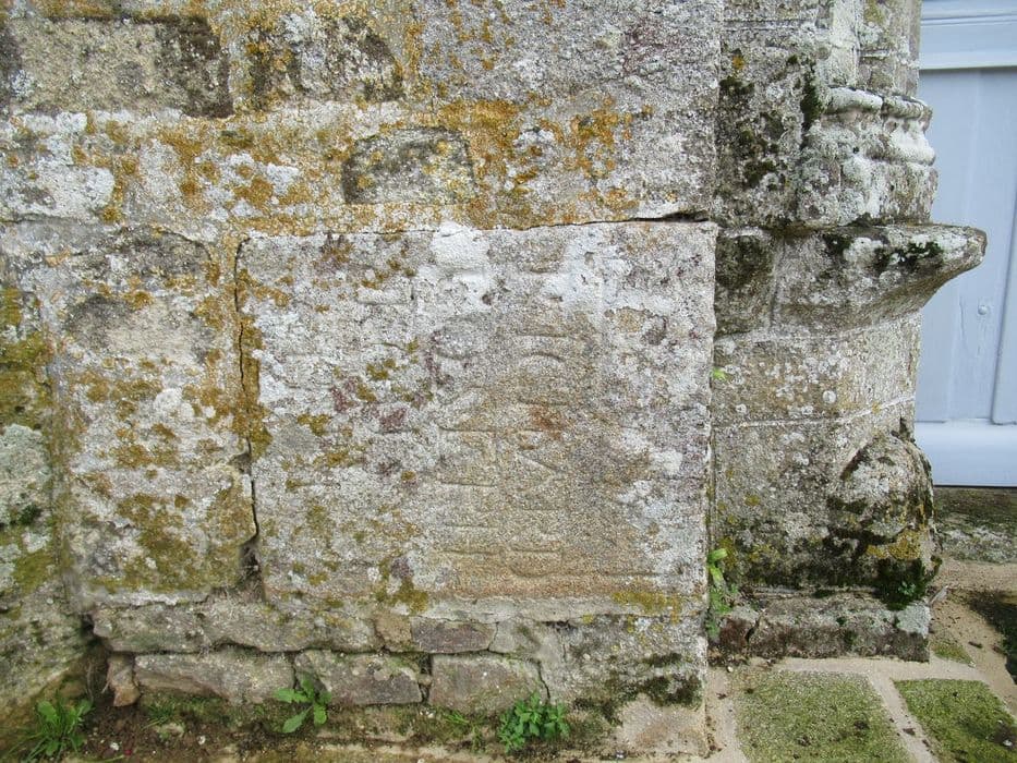façade ouest, détail d’une pierre réemployée (dalle funéraire?)