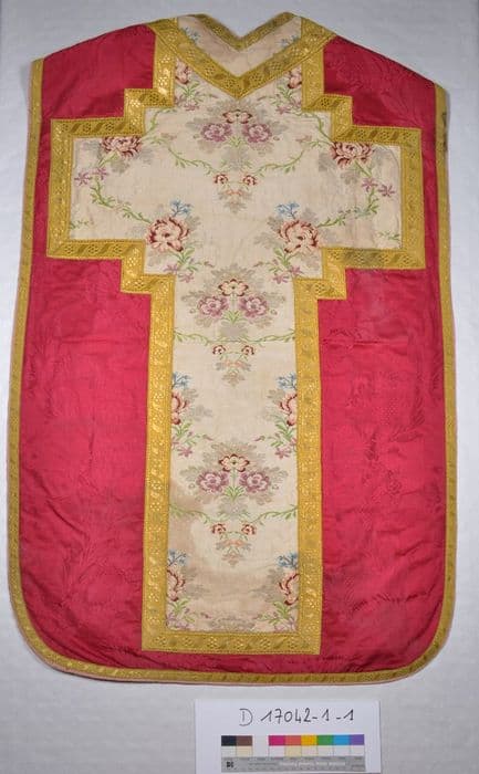 POP | Plateforme ouverte du patrimoineOrnement liturgique n° 22 (intérieur rose pale, décor de rose) : Chasuble (dos)
