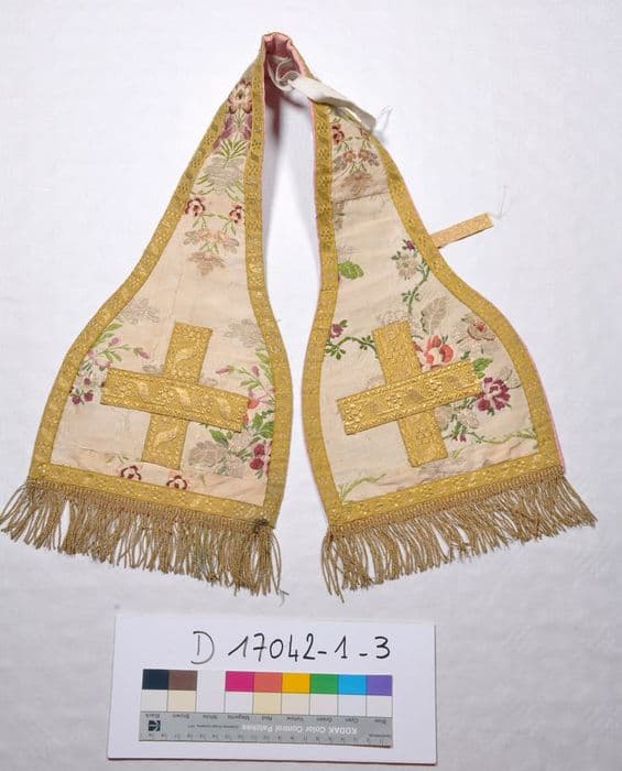 Ornement liturgique n° 22 (intérieur rose pale, décor de rose) : Manipule