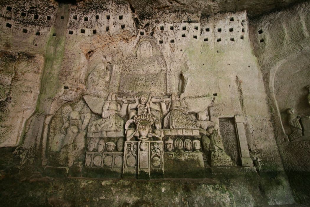 grotte dite du « Jugement dernier », détail d'un bas-relief