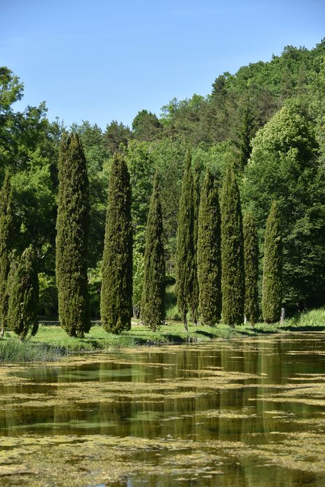 bassin et alignement de cyprès