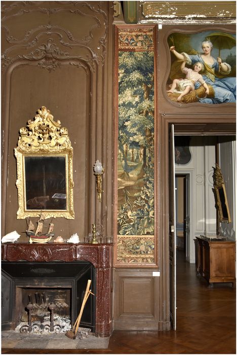 tapisserie : Paysage à bordures de rinceaux d'acanthe (C4) et portrait au-dessus de la porte