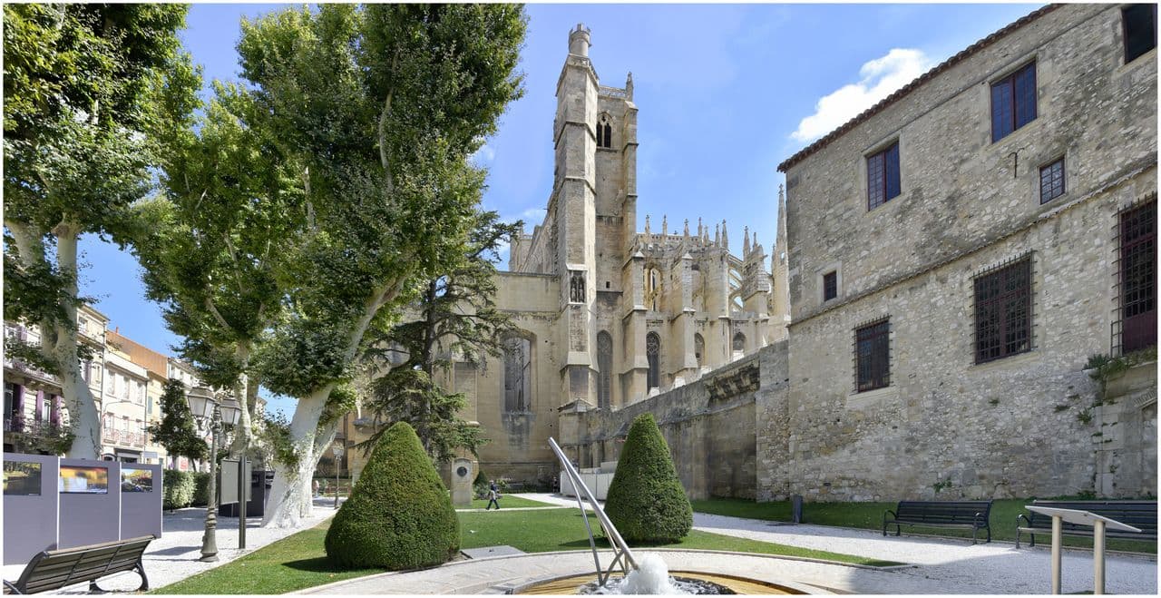 Jardin de l'Archevêché et élévation sud de la cathédrale.