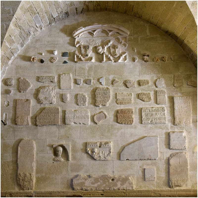 Fragments lapidaires sur le mur sud.