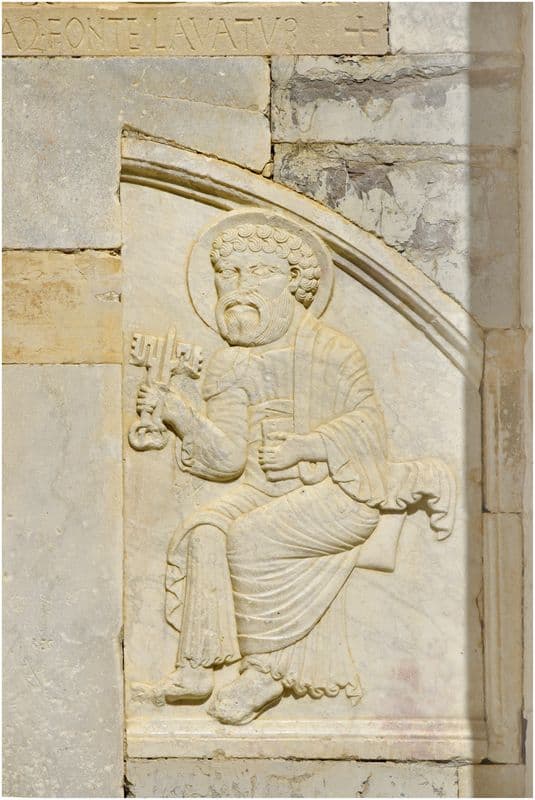 Portail occidental. Tympan. Détail : saint Pierre.