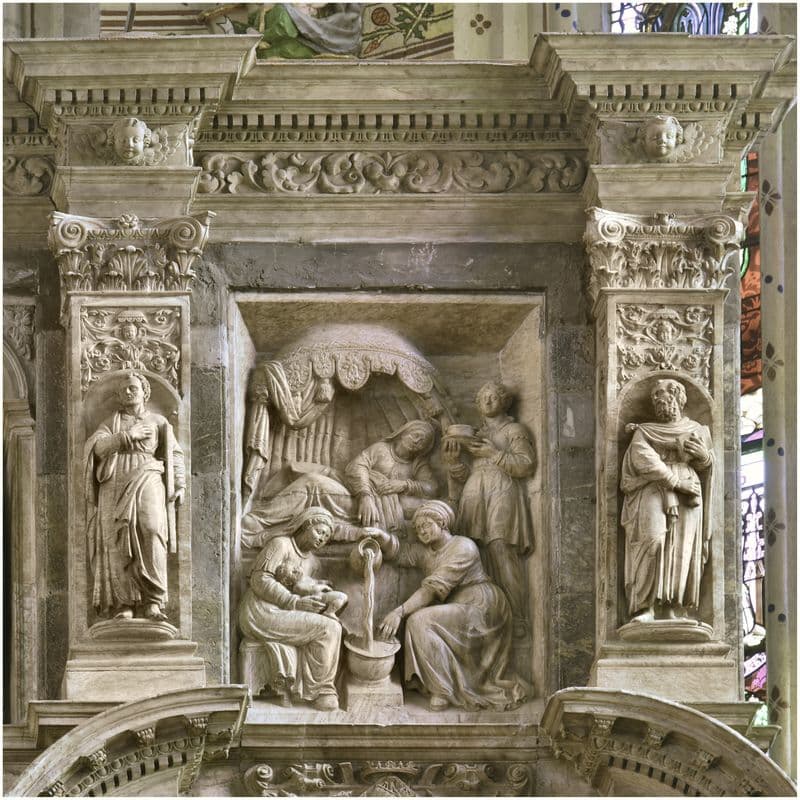 Retable du maître-autel. Panneau : naissance de Jean-Baptiste.