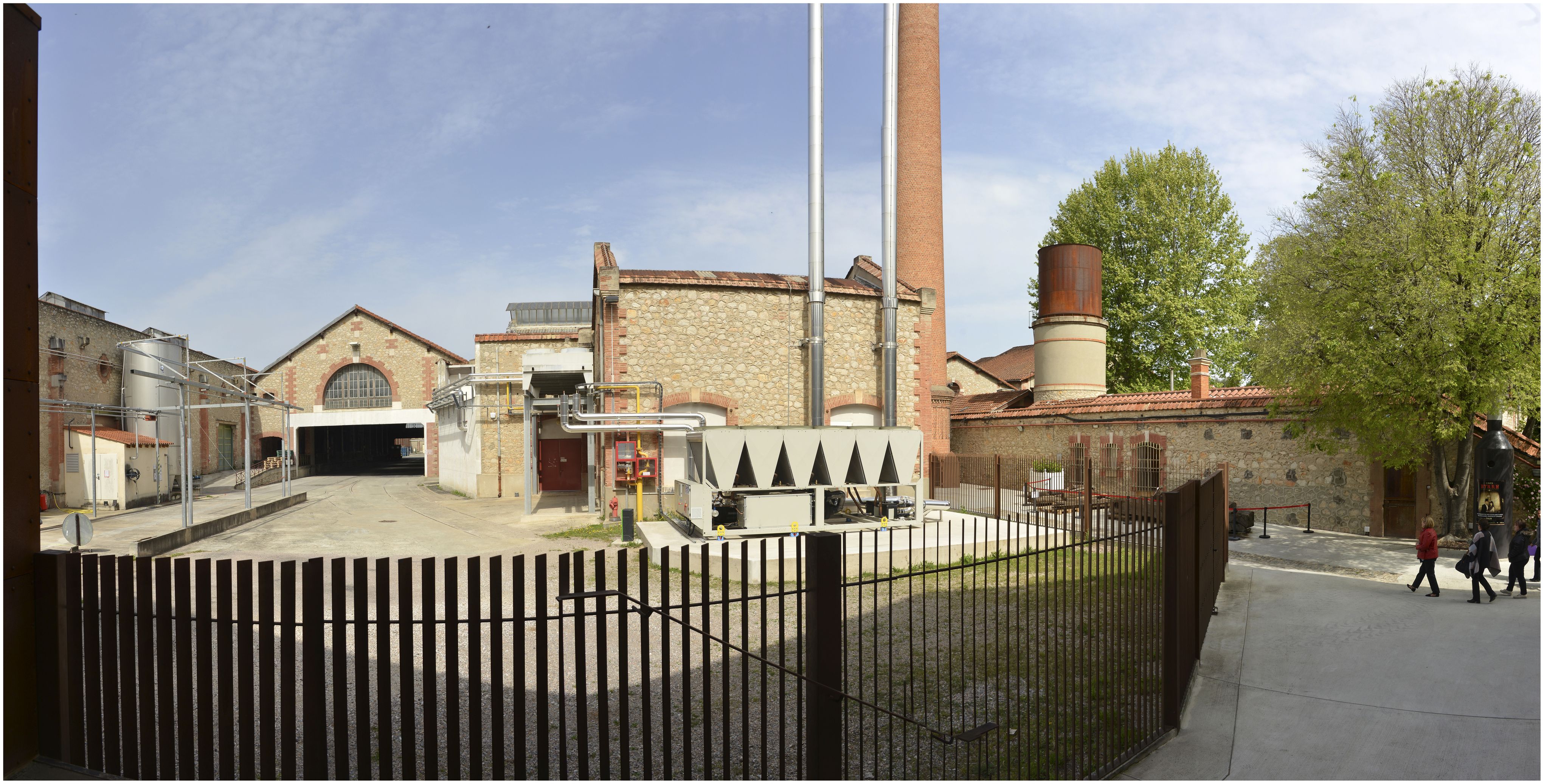 Parcours de la visite à la sortie de l’annexe 3. Séparé par la grille : le site de production Cusenier avec la grande halle Eiffel.