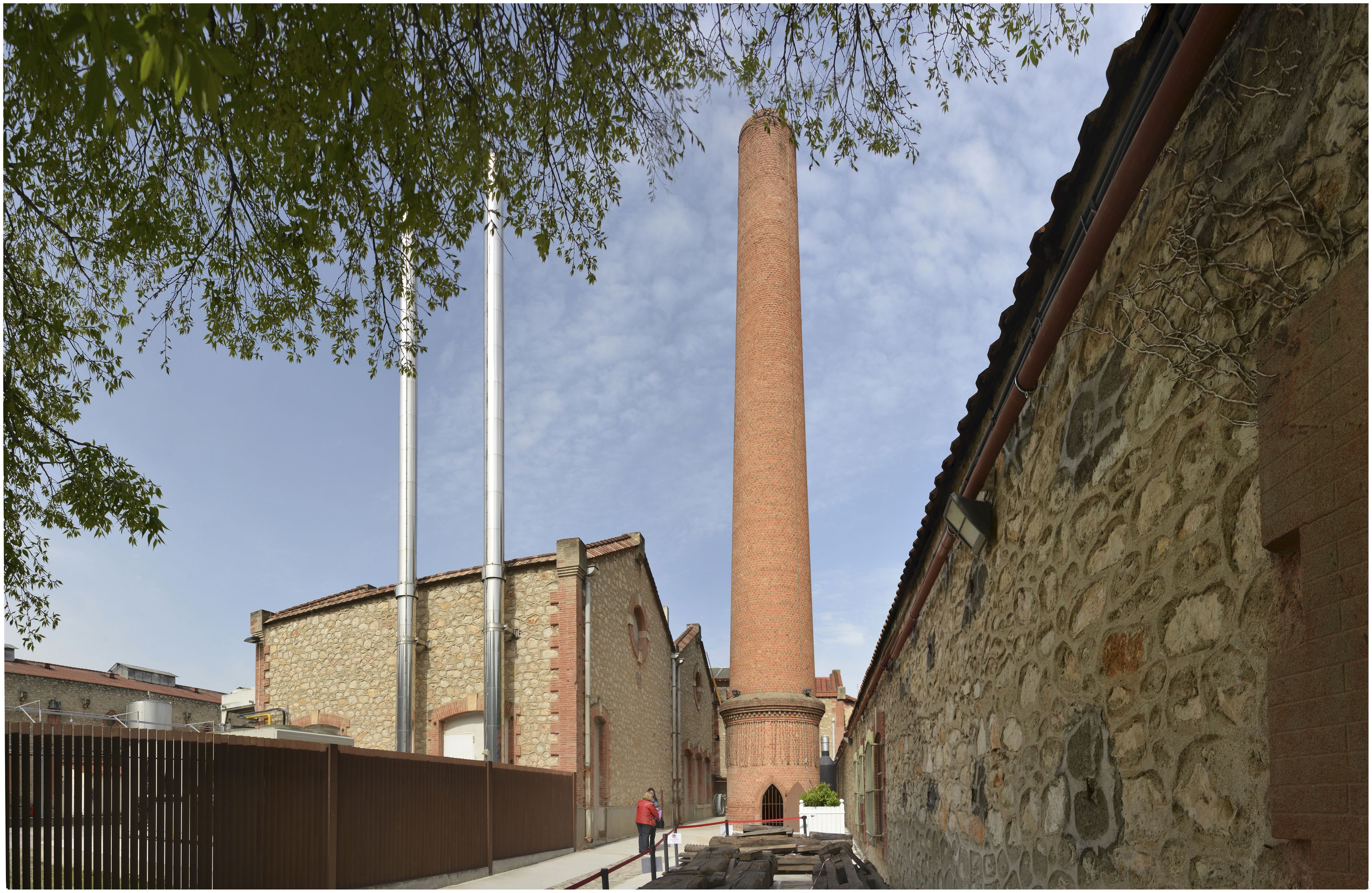 Passage vers l’allée des peupliers et l’annexe 7. Ancienne cheminée désaffectée.