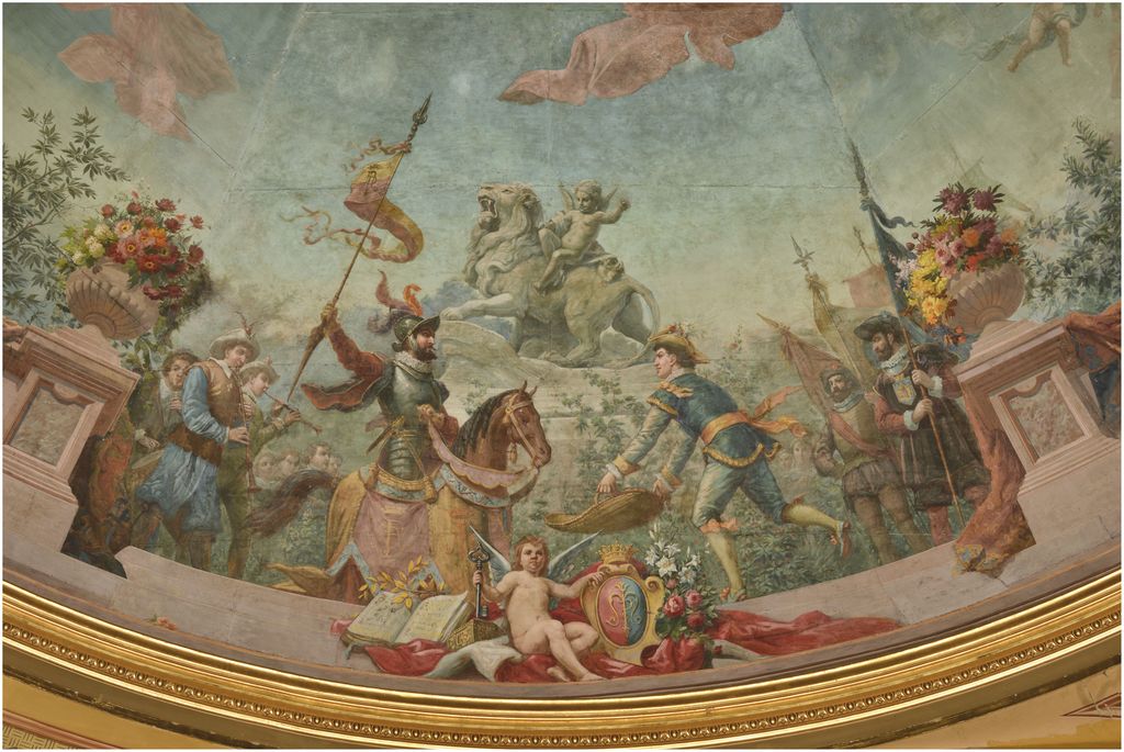 La salle du théâtre de la Comédie. Plafond peint par Arnaud-Durbec. Détail.