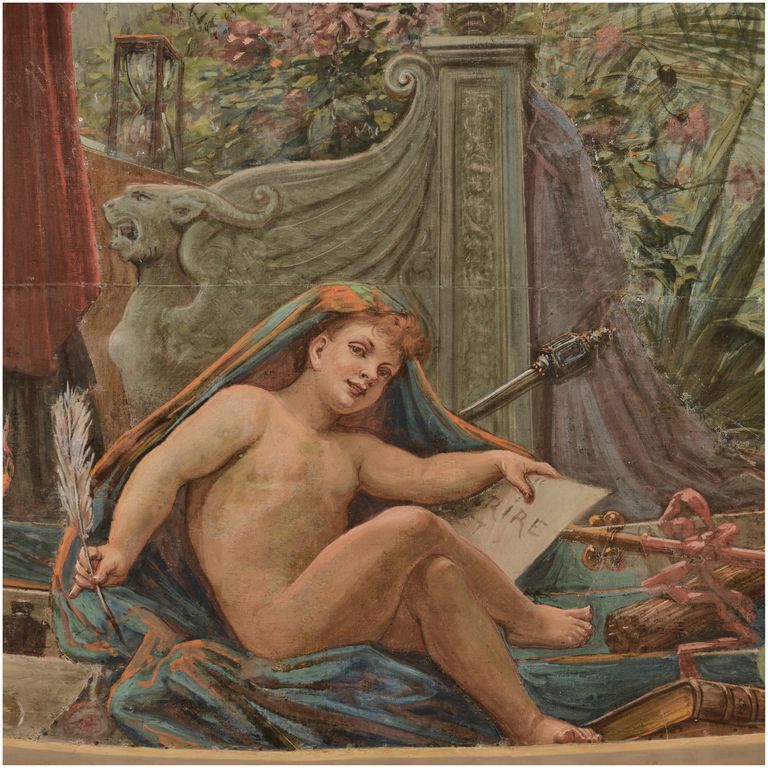 La salle du théâtre de la Comédie. Plafond peint par Arnaud-Durbec. Détail.