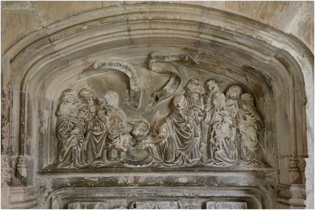 POP | Plateforme ouverte du patrimoinepetit cloître, lavabo de cloître, haut-relief : Le lavement de pieds, vue partielle