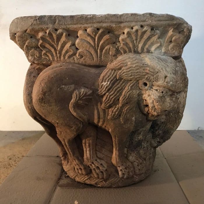 chapiteau roman : Lions affrontés