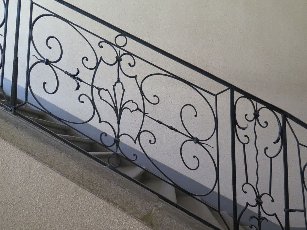 Escalier. Détail de la rampe en fer forgé
