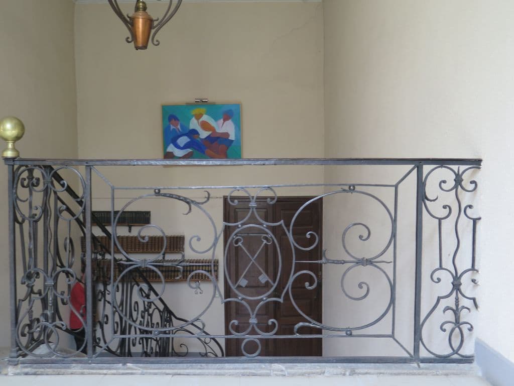 Escalier. Détail de la rampe en fer forgé sur le palier du dernier étage