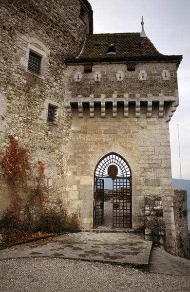 Châtelet, grille en fer et machicoulis.