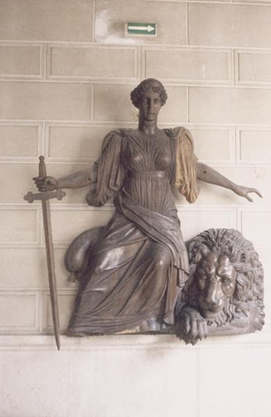 Groupe sculpté par Sappey (1834) autrefois au centre du plafond de la salle des assemblées de la cour.