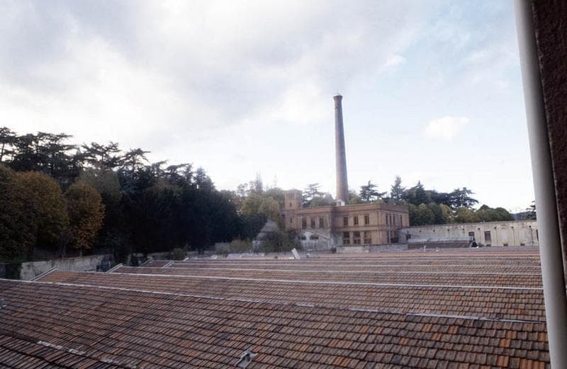 Vue d'ensemble, sheds et cheminée.