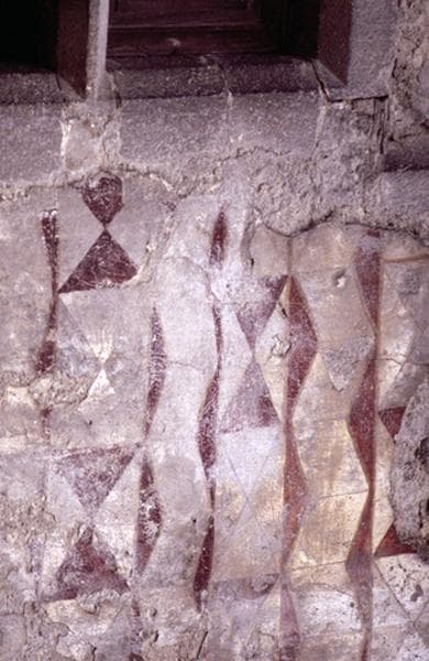 Maison forte, façade sur cour, détails, décors peints.