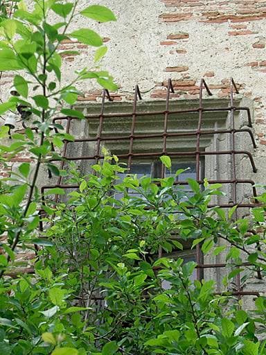 Façade sud-est : fenêtre à meneau (rez-de-chaussée, partie est).