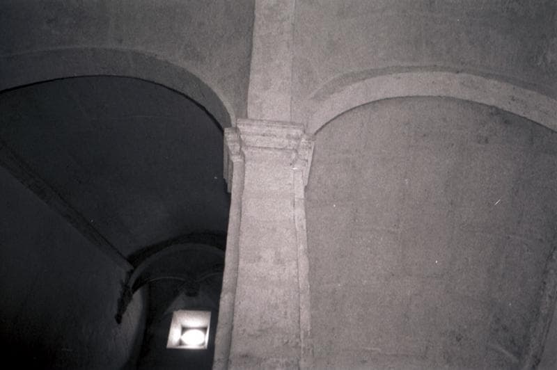 Escalier à volées droites à cage voûtée.