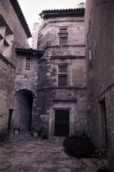 Extérieur. Elévation de la tour d'escalier et de l'aile attenante.
