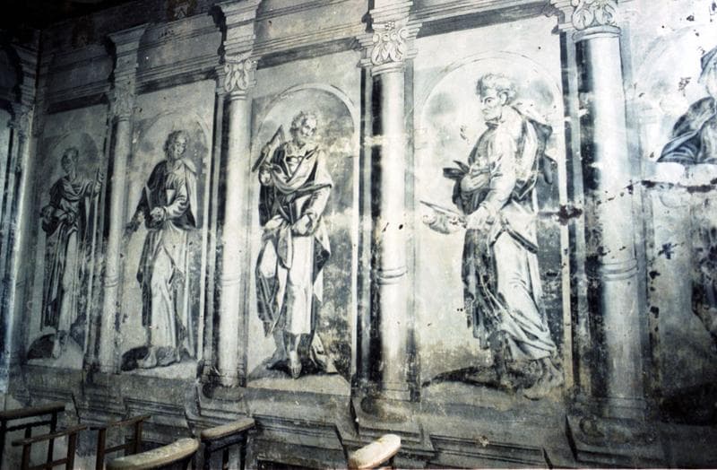 Chapelle : peintures murales en camaïeu.