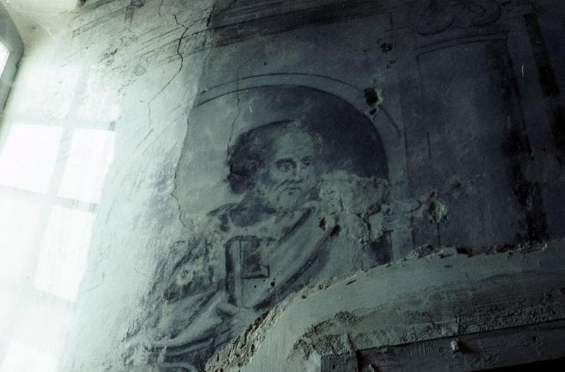 Chapelle : peintures murales en camaïeu, évangéliste.