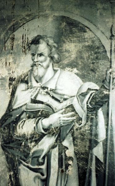 Chapelle : peintures murales en camaïeu, évangéliste.
