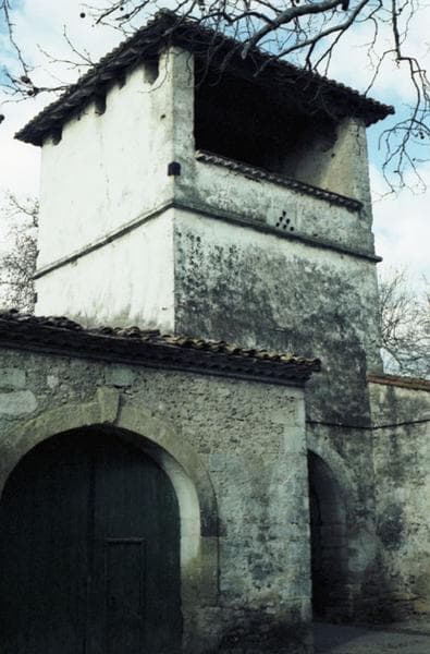 Tour-porte avec pigeonnier à l'étage.