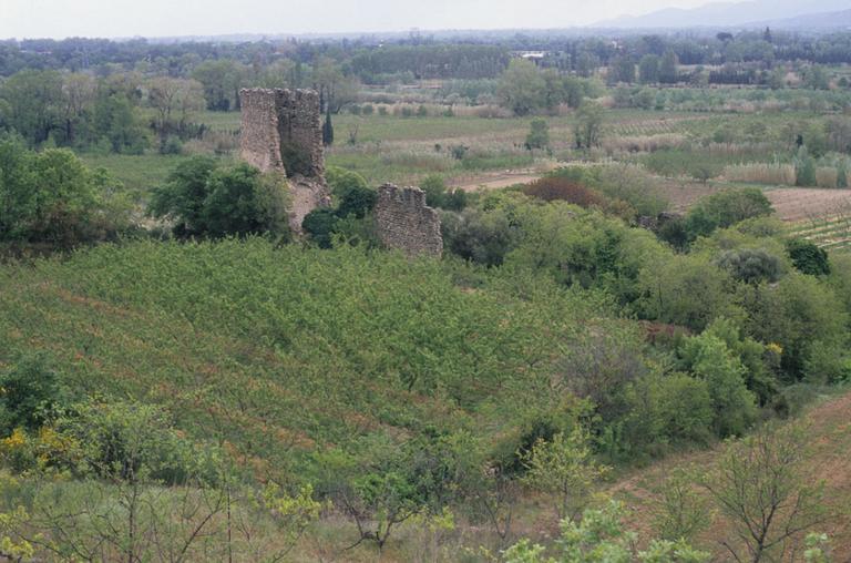 Vue générale des vestiges du monastère et de sa tour.
