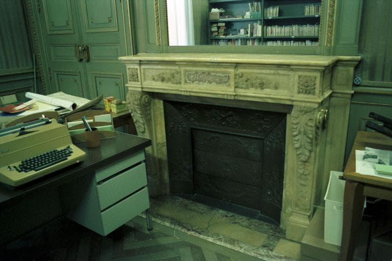 Intérieur ; décor de la bibliothèque.