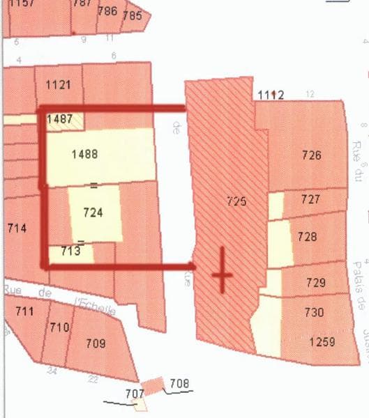 Plan cadastral : en rouge l'emplacement présumé du cloître des Cordeliers.
