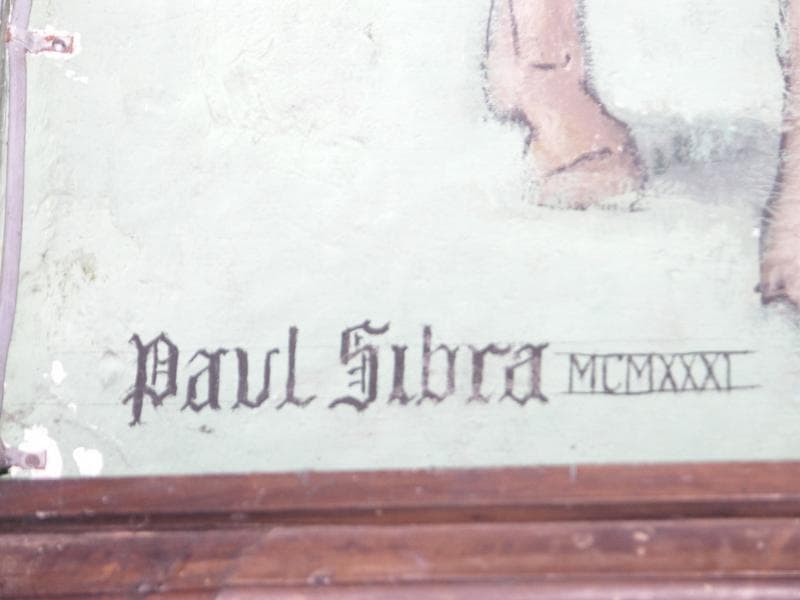 Nef. Peinture de Paul Sibra. Tableau : Saint François prêchant aux oiseaux 1931. Signature et date.