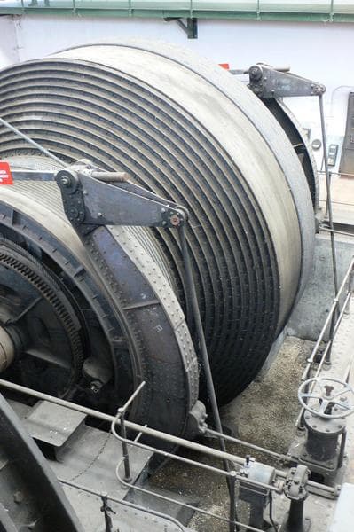 Salle des machines : détail du treuil.