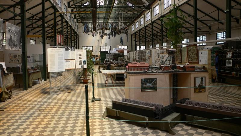 La "salle des pendus", actuel musée du mineur : système de suspension des effets personnels des mineurs : paniers...