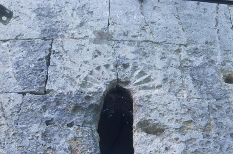 Chevet ; détail de la baie axiale à linteau échancré.