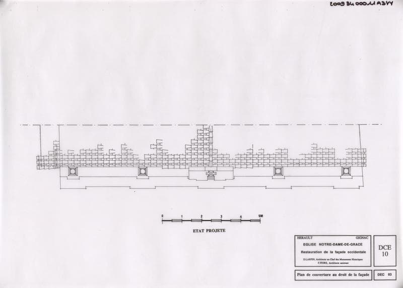 Eglise Notre-Dame-de-Grâce, restauration de la façade occidentale : plan de couverture au droit de la façade. DCE 10.