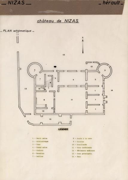 Château de Nizas : plan schématique légendé.