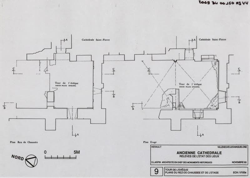 Relevés de l'état de lieux. Tour de l'Evêque, plans du rez-de-chaussée et de l'étage. 9.