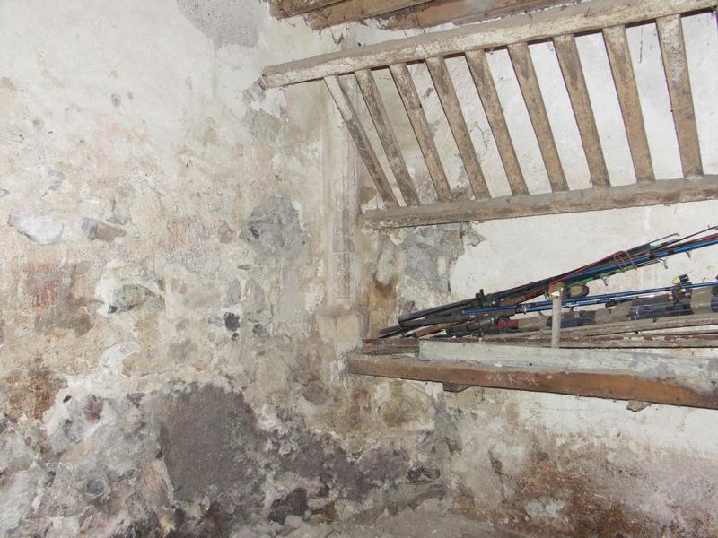 Enclos canonial. Maison 7-9 place du chapitre. Parcelle 295. Salle capitulaire. Transformée en étable. Angle nord-est. Dans l'angle départ de voûte gothique.