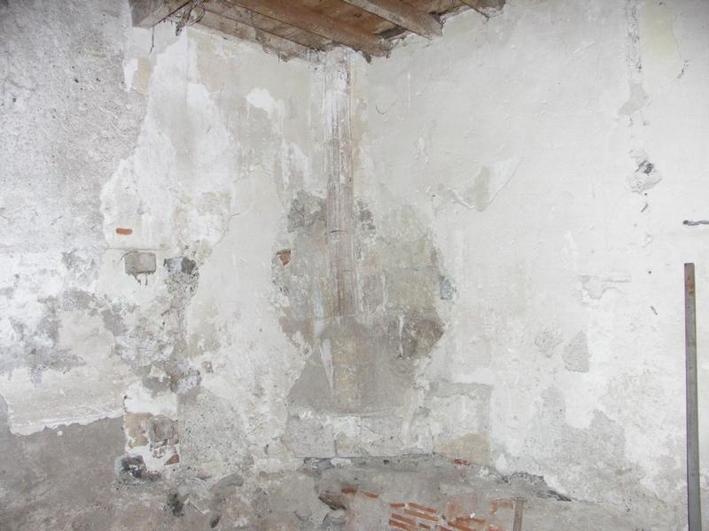 Enclos canonial. Maison 7-9 place du chapitre. Parcelle 295. Salle capitulaire. Mur sud-est. Dans l'angle départ de voûte gothique.