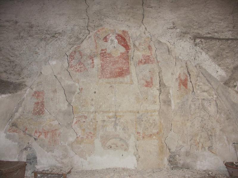 Enclos canonial. Maison 7-9 place du chapitre. Parcelle 295. Salle capitulaire. Niveau haut. Mur est. Peinture murale.