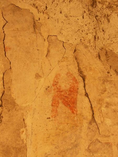 Enclos canonial. Maison 7-9 place du chapitre. Parcelle 295. Salle capitulaire. Niveau haut. Mur est. Peinture murale. Personnage indéterminé.