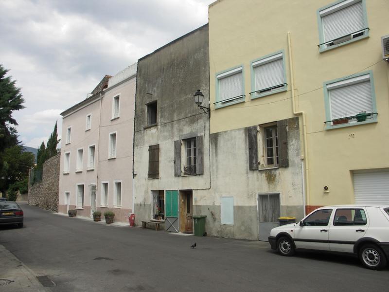 Enclos canonial. Maisons bd de l'Agly ouvertes dans l'enceinte de la ville contre laquelle s'appuyait l'enclos du chapitre.