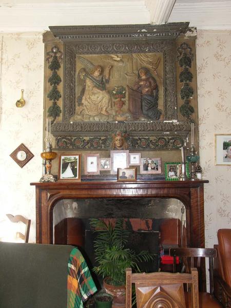 Enclos canonial. Maison canoniale 1 rue du Dr Monnier. Parcelle 292. 1er étage. Salle avec une cheminée ornée d'une Annonciation en gypserie.
