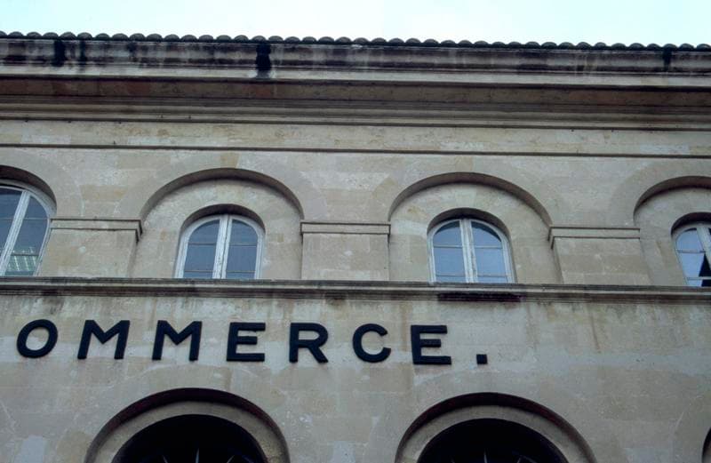 Chambre de Commerce et d'Industrie, côté rue de la République, détail de la façade d'entrée.
