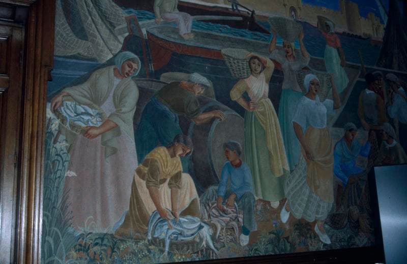 Chambre de Commerce et d'Industrie, intérieur, décor peint par André Clair : le port d'Aigues-Mortes.