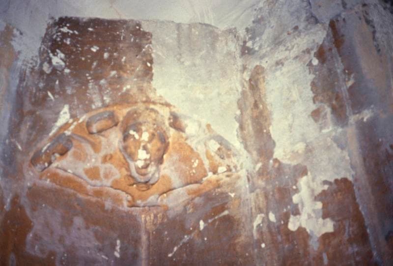 Cage d'escalier, trompe d'angle décorée.
